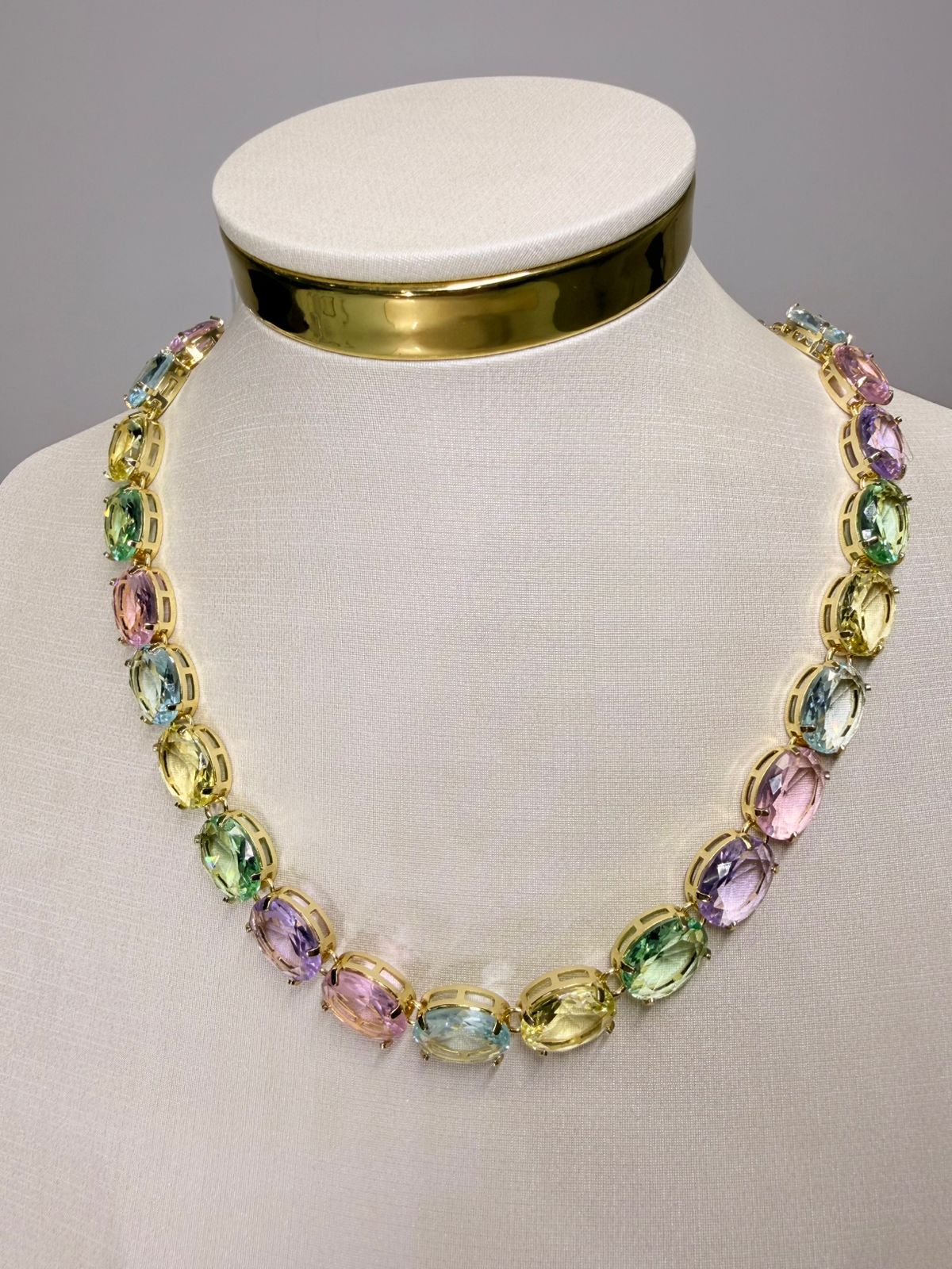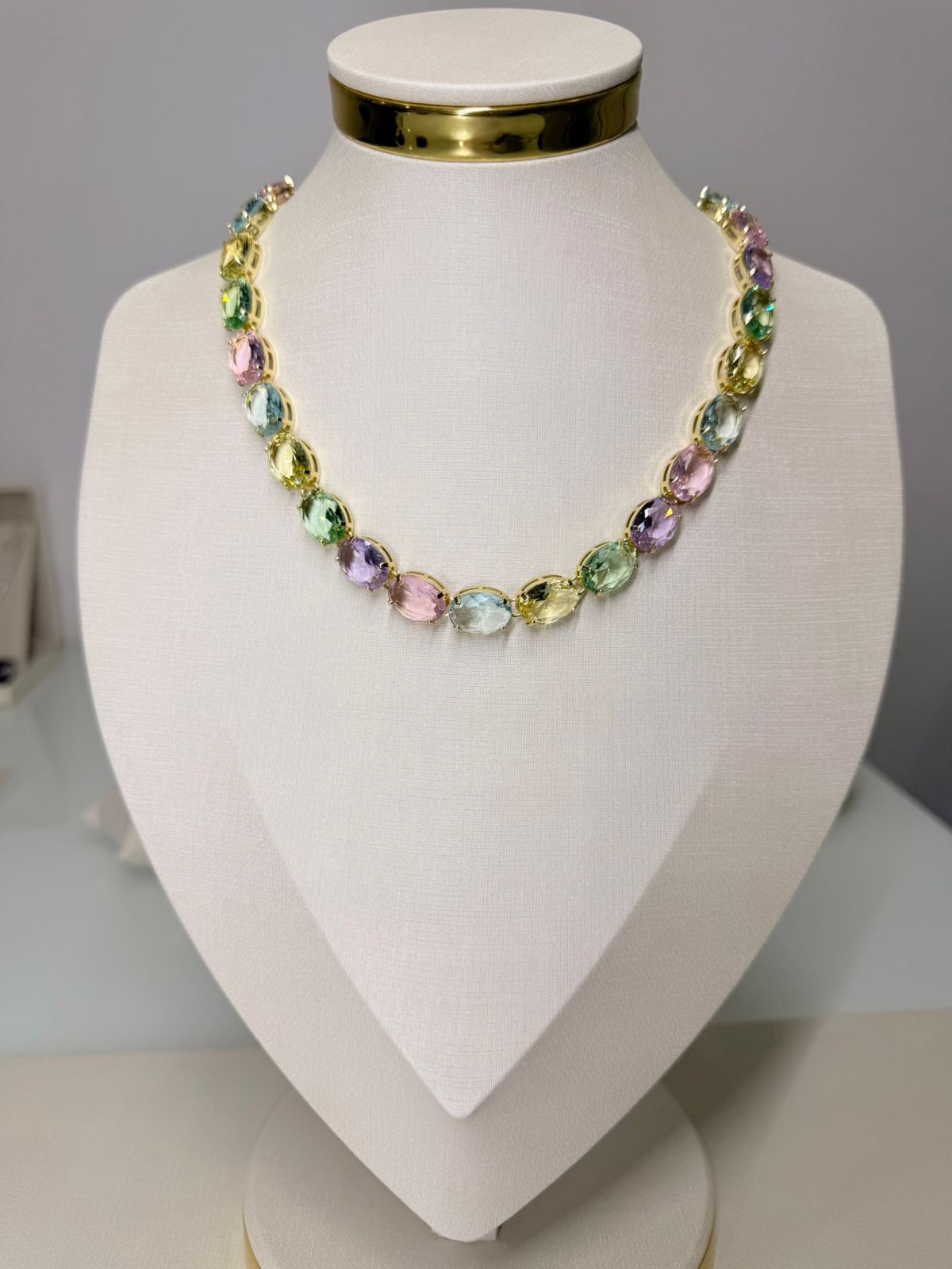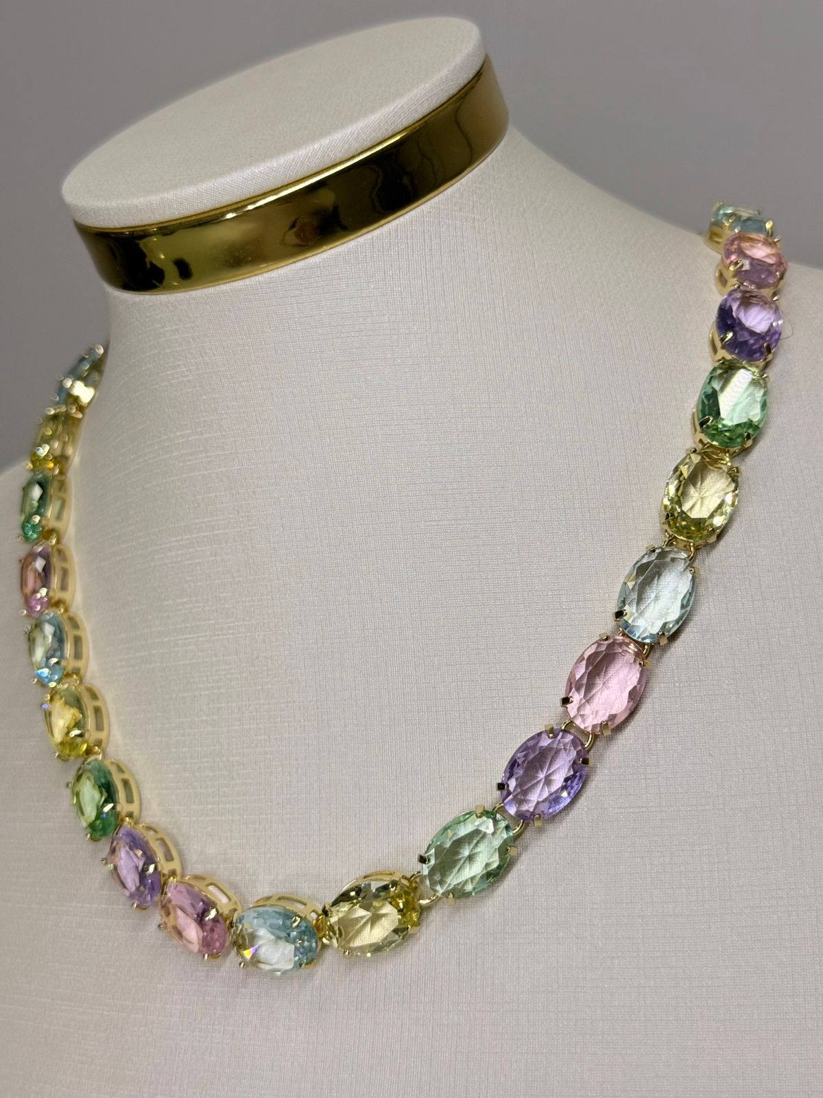 Vibrante, moderna e cheia de estilo, a Riviera Cristal Colors é a peça perfeita para quem ama se destacar com elegância. Com cristais multicoloridos cuidadosamente alinhados, o colar cria um efeito luminoso e alegre que transforma qualquer produção. O banho em ouro 18K traz sofisticação e um toque de luxo, equilibrando perfeitamente a ousadia das cores com um acabamento refinado. Versátil e autêntica, é o acessório ideal para iluminar seus looks com personalidade e charme em qualquer ocasião.