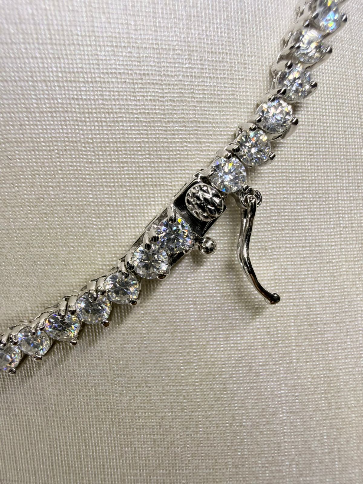 Brilho que encanta e sofisticação que dura para sempre: a Riviera em Prata 925 com Moissanite é a joia que transforma qualquer look. Com pedras lapidadas que refletem a luz de forma intensa, ela oferece o glamour do diamante com ainda mais acessibilidade e sustentabilidade. Medindo 42 cm de comprimento e 3 mm de largura, o colar tem o tamanho perfeito para valorizar o colo com delicadeza e presença. O acabamento em prata 925 garante durabilidade e elegância, tornando esta peça atemporal e ideal para quem busca luxo, estilo e versatilidade em uma única joia.