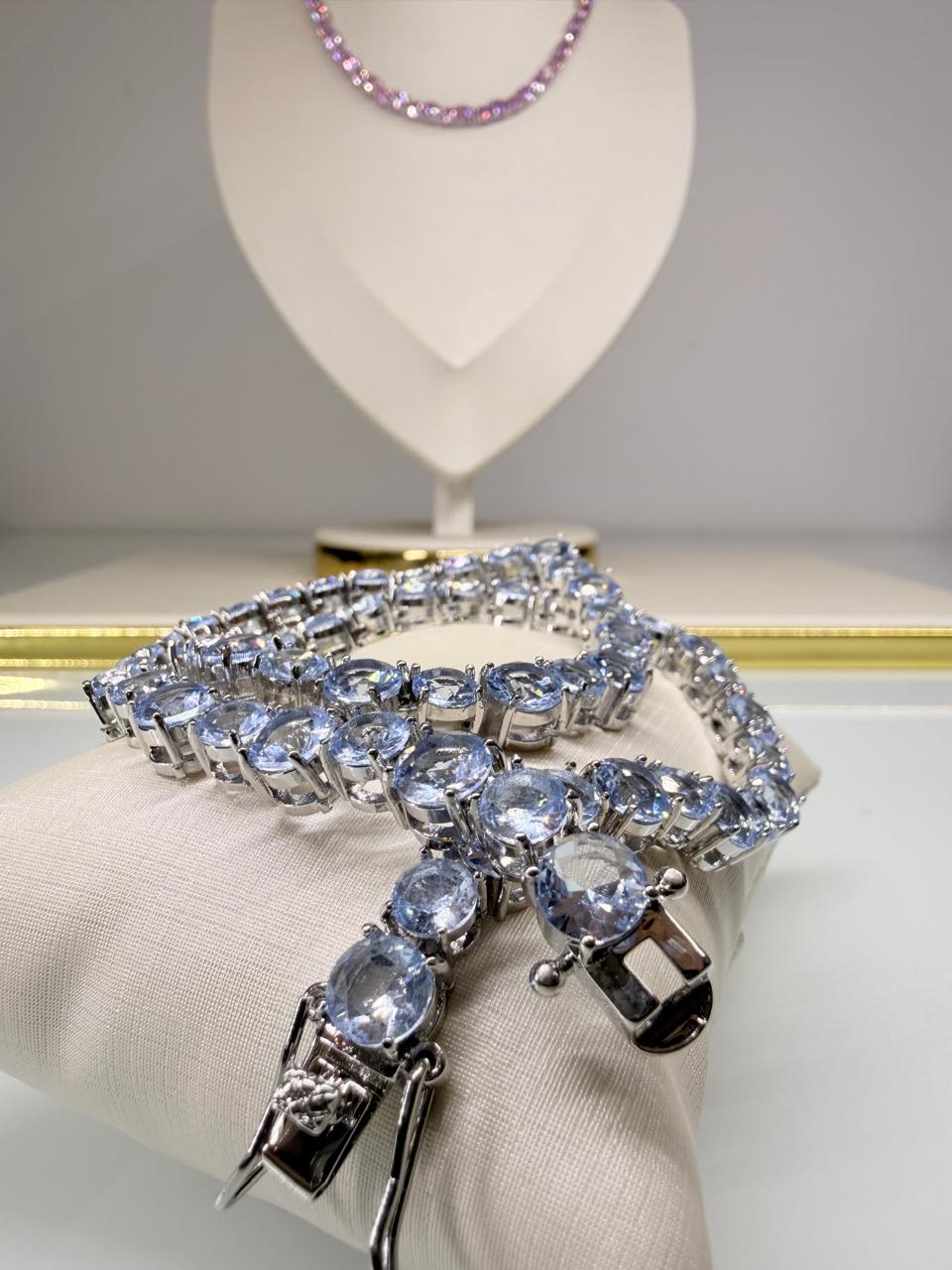 A Riviera Cushion Colors traz cristais coloridos com tamanhos intercalados de 6mm e 8mm, criando um design sofisticado e exclusivo.